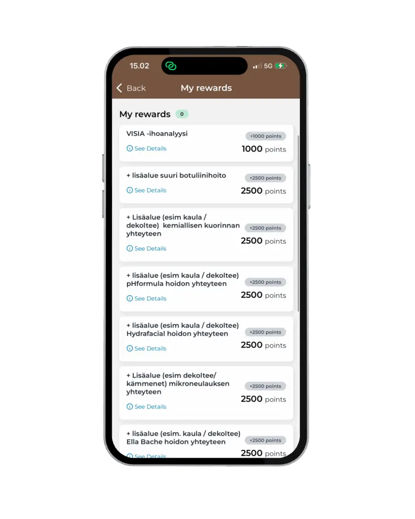 Kertyneillä pisteillä voit lunastaa erilaisia etuja, juuri silloin, kun haluat hemmotella itseäsi tai täydentää hoitosuunnitelmaasi.